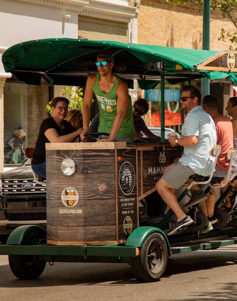 You’ve never seen a pub crawl like this! TC Cycle Pub offers three pedal-powered pub crawlers: the 7-14 passenger, the 7 – 12 passenger and the 4-6 passenger Blue Circle Cycle. All bikes are powered by YOU, and driven by one of our trusty guides. Got a smaller group? Easy! Got a large group? No problem! Fun with friends is what we do best! Our pub crawlers are perfect for bachelor & bachelorette parties, family get-togethers, or just hanging out with friends. Whatever you are celebrating, TC Cycle Pub is ready to make your day! Where would you take the #TcCyclePub? See what’s possible.